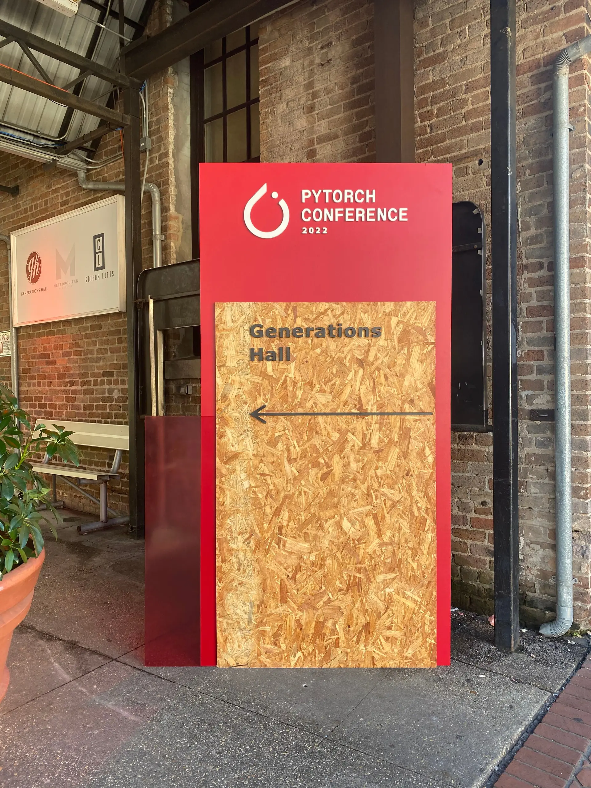 Meta’s PyTorch Conference↗ was also held as a satellite conference at Generation Hall, a little away from the convention center. On one side of the enormous venue, Meta employees answered the questions of on-site participants regarding the release of PyTorch 2.0. On the other side, the presentation from the giant stage was broadcast live to attendees online.