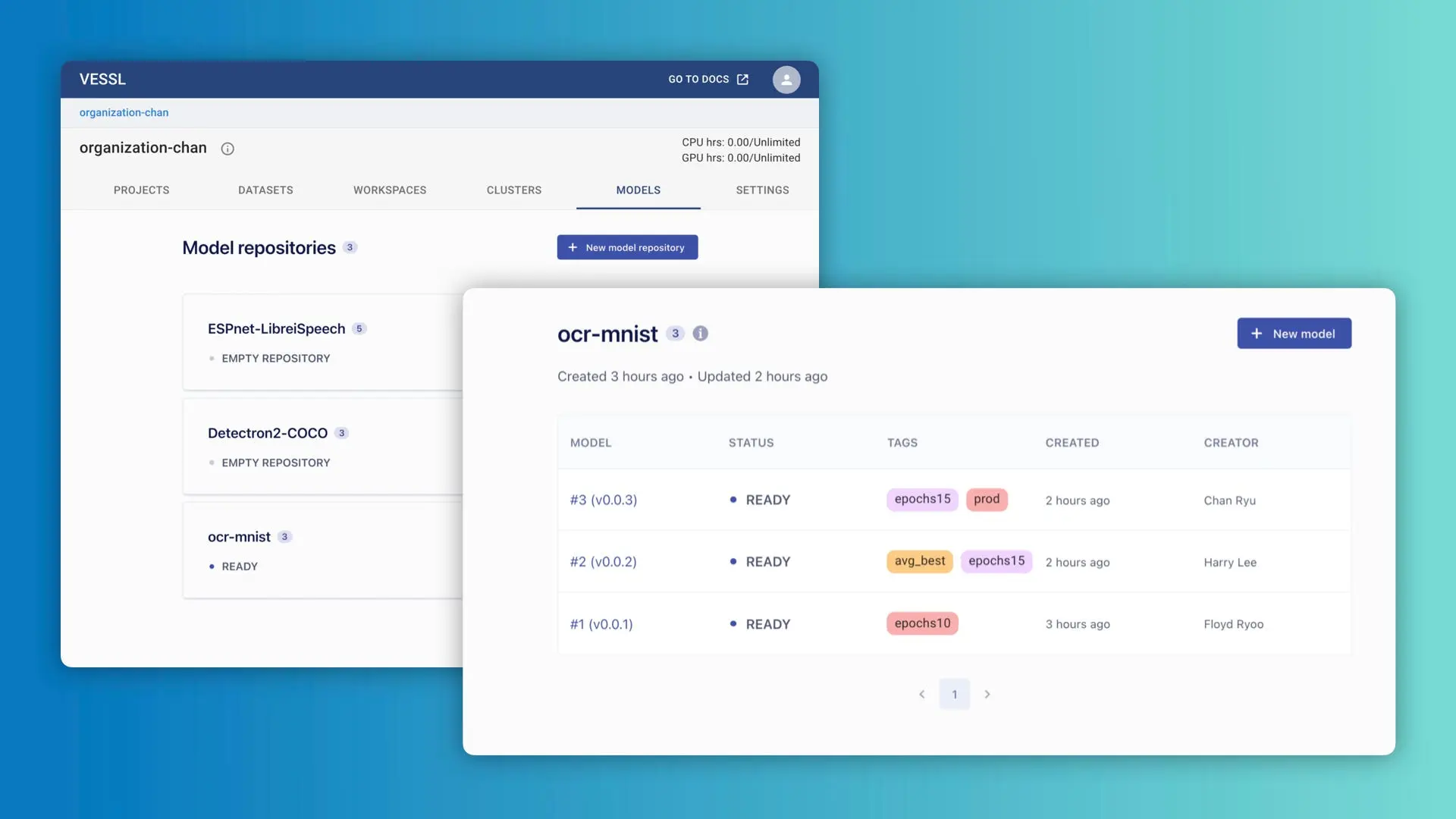 - Up to 15 seats and support for up to 5 on-premise server integration. Contact us at contact@vessl.ai to discuss additional seats and server integration.