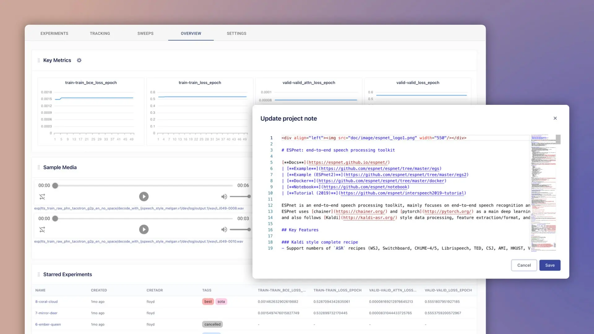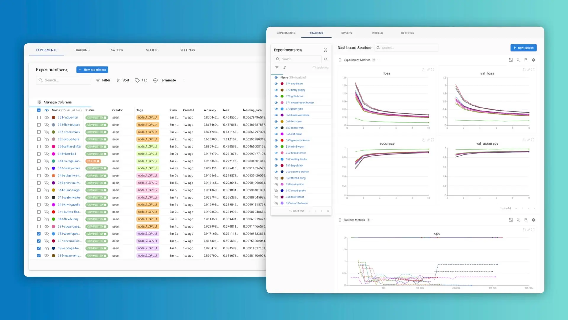- Experiment dashboard: track all experiments regardless of the run environment.