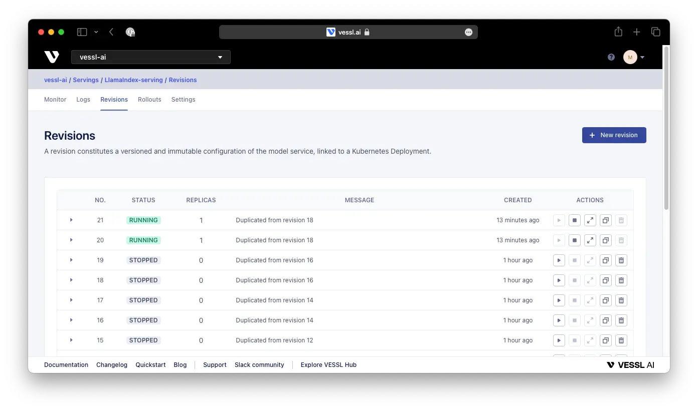 vessl serve revision create -f llamaindex.yaml --serving llamaindex --update-gateway --enable-gateway-if-off