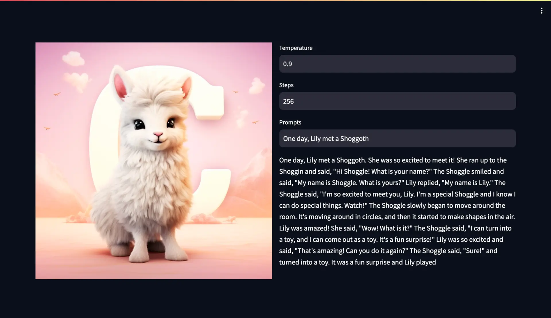 -d '{"prompts": "Once upon a time, Floyd"}'