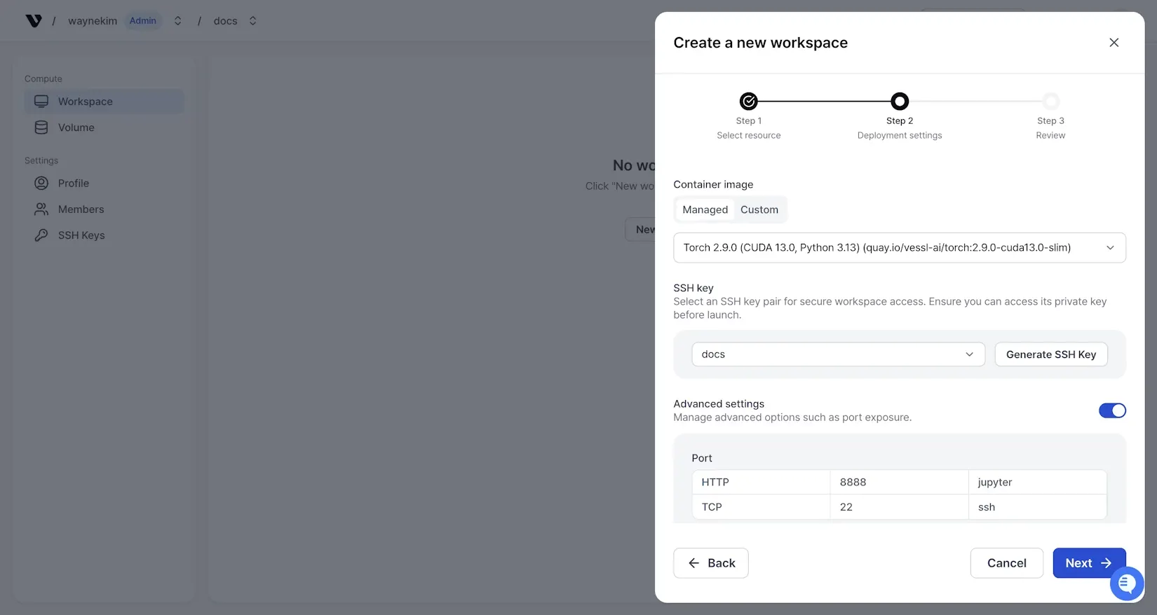 - You can use official images like PyTorch and CUDA, or your own custom images.