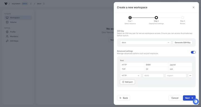 - Select a Resource Spec (GPU/CPU) that fits your workload.