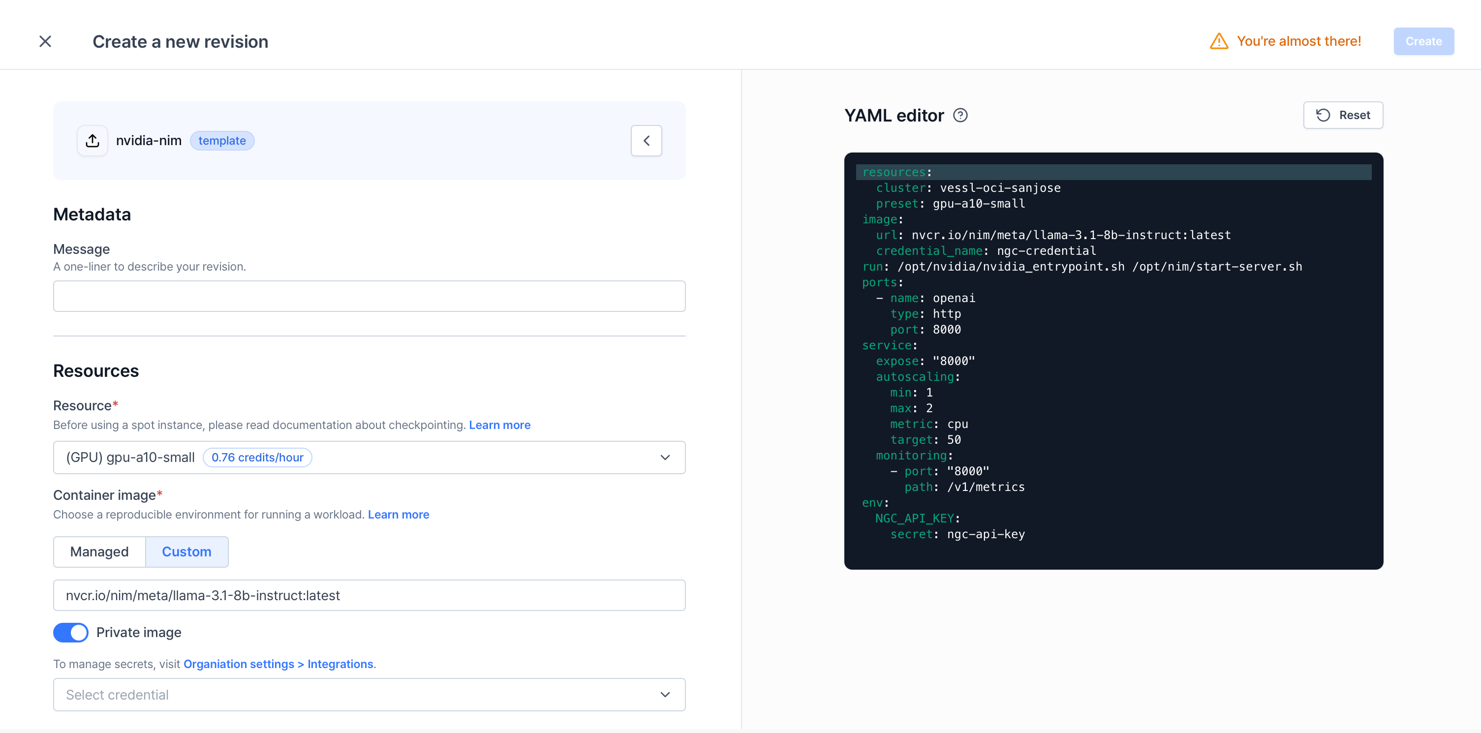 - Credential name : ngc-credential